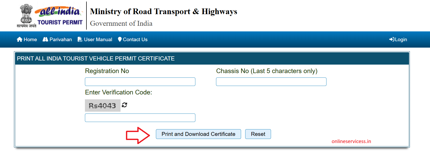 - Open Parivahan website