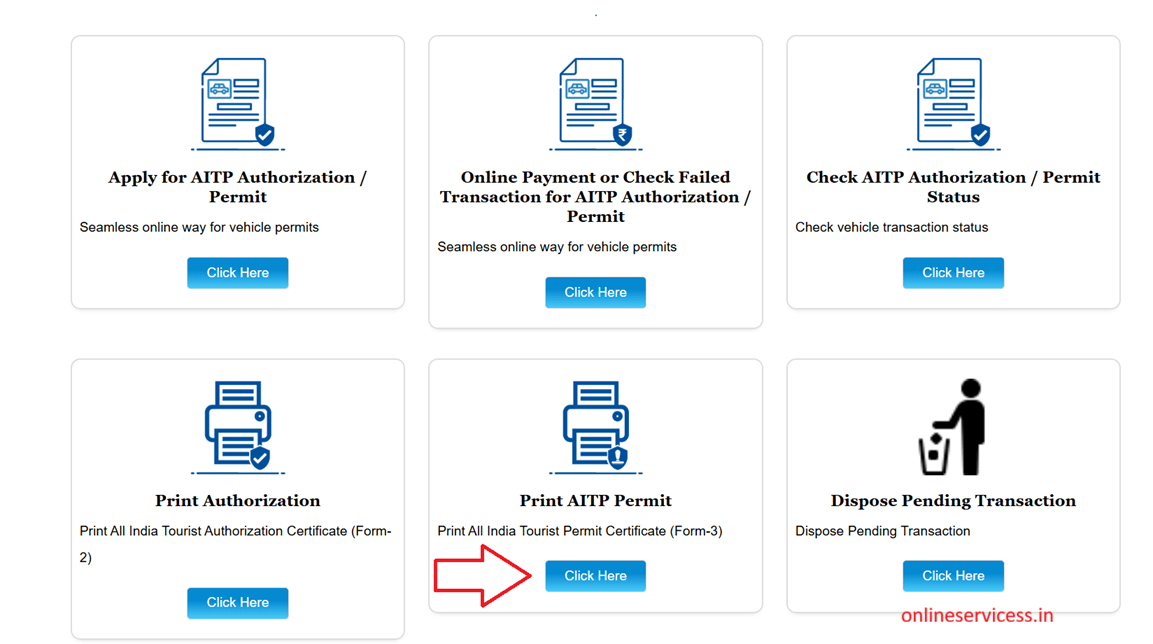 Now select from main menu to Online Services to All India Tourist Permit.