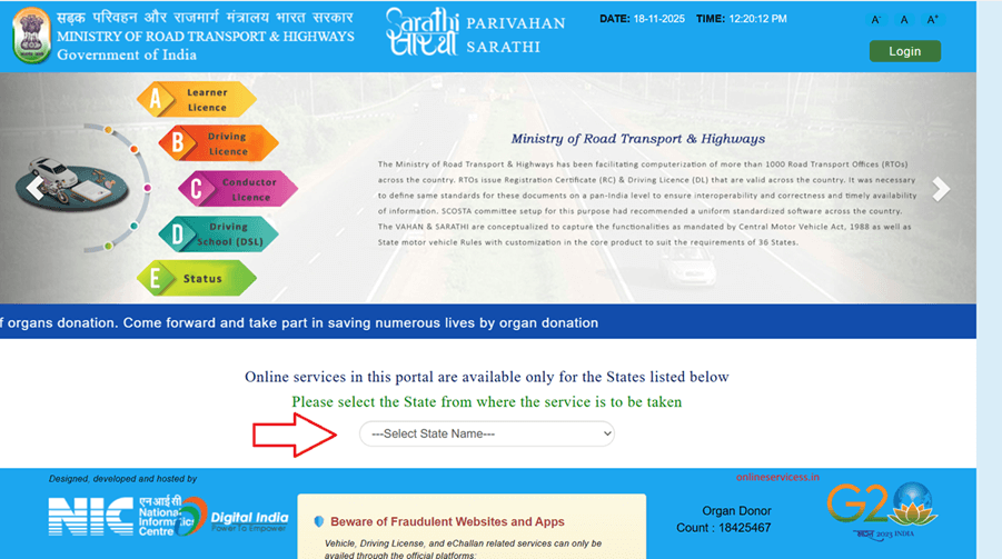 First, visit the Parivahan portal: and select the main menu to Online Services to Driving Licence Related Services.