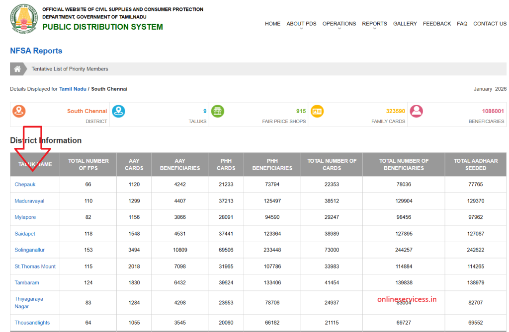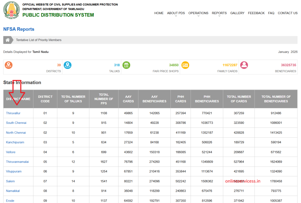 First open tnpds official website: https://www.tnpds.gov.in. select right side to NFSA reports.