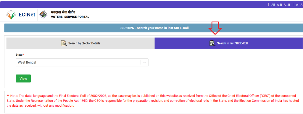 If you want to find your name in the final SIR 2026 voter list of the West Bengal, then first go to the ECI official website:https://voters.eci.gov.in, and select Special Intensive Revision (SIR) 2026 to Search Your Name in the last SIR.